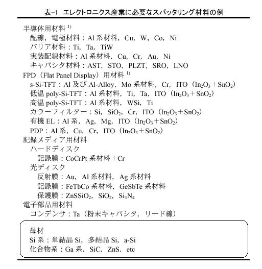 1) 斉藤茂:「スパッタリングターゲットの動向」, 真空ジャーナル, 2006年7月号